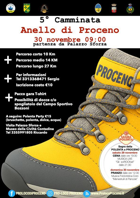 Domenica 30 novembre si svolgerà la 5a camminata dell'Anello di Proceno, partenza alle ore 9 da Palazzo Guido Ascanio Sforza, con tre percorsi di 10, 14 e 27km.